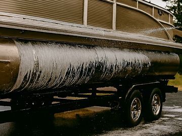 A full boat detail includes a complete interior and exterior cleaning: hull acid wash to remove yellowing and buildup, hand wash and wax for shine and protection, interior vacuuming, vinyl and upholstery cleaning, glass polishing, and metal brightening. Ideal for restoring your boat’s look after time on Flathead Lake or in storage.